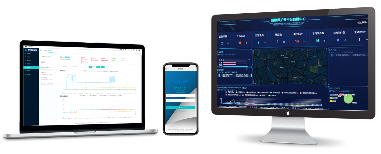 本采集终端显示平台由我公司自主开发,系统平台采用 B/S 架构软件,只需将平台软件安装于服务器中,登录账号后即可实时监测阴保状态。客户端与云服务器端软件分离,确保云端数据安全及系统升级维护方便。GIS 监控中心可直观展示不同管道走向及设备采集数据,方便用户监看不同管道设备的各项数据。