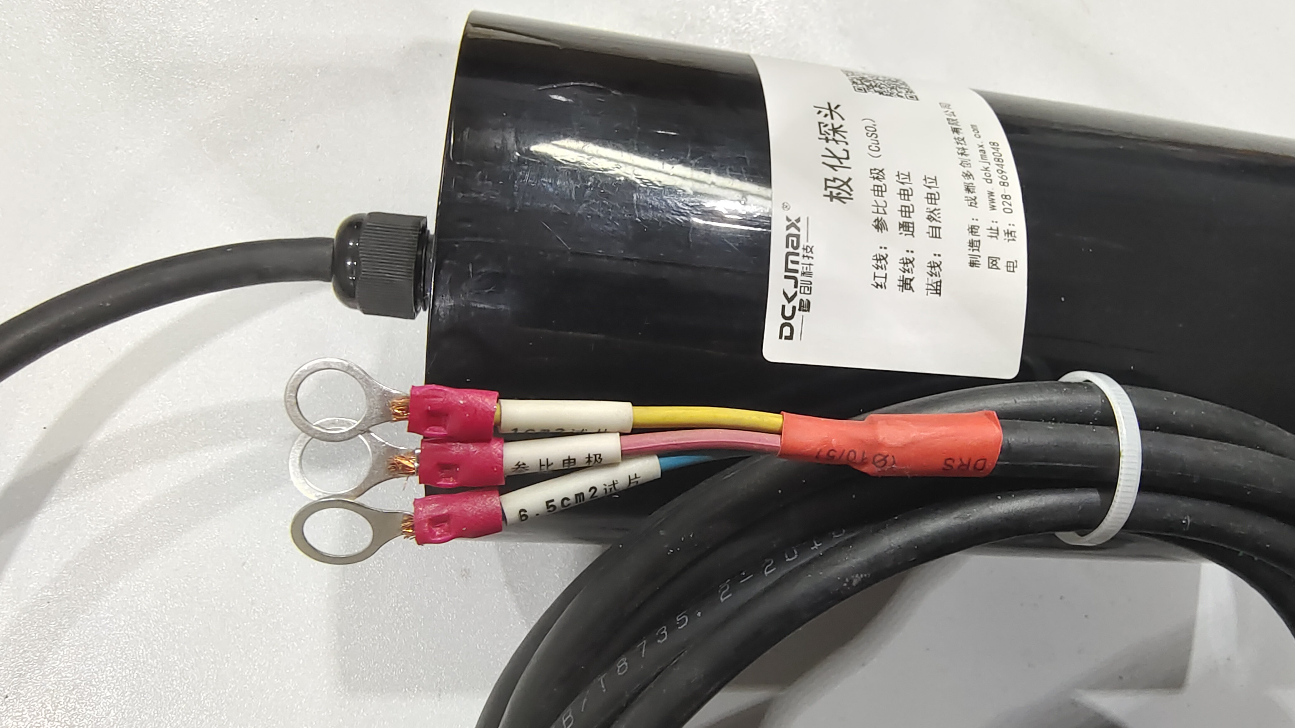 铜/饱和硫酸铜型极化探头,其电极体规格为:Φ110×240mm,试片规格为:1cm²、6.5cm²、(可选填包料布袋)。相对于标准氢电极的电位为+316mV(25℃),